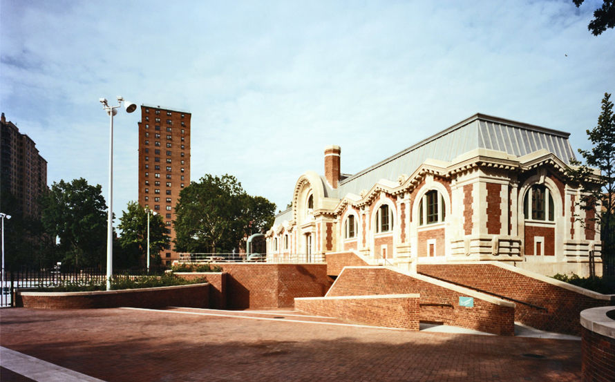 This elegant Beaux-Arts structure and four-acre park located in the Lower East Side of Manhattan, originally designed by Carrére & Hastings at the turn of the 19th century, has been restored and the park reinvented to suit the current community’s needs and desires. The park building’s original limestone and brick façade was cleaned while the interior was insulated, clad in marble and provided with a terrazzo floor. The gymnasium now has a new life as a community center with a meeting room, classrooms and a theater/stage.